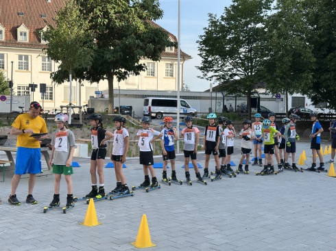Die traumhafte Abendstimmung gab es auch wieder in diesem Jahr. Zum ersten Mal waren nicht nur die Skirollerathleten vertreten, sondern auch die Grundschüler der Zeppelinschule bewiesen ihr Können auf Inlinern. An diesem Freitagabend, 05.07.2024, gab es fast zeitgleich das EM-Viertelfinale DEU-ESP im TV zu erleben. Während der deutschen Nationalelf das Weiterkommen versagt geblieben ist, zeigten alle Schülerinnen und Schüler tolle Leistungen beim Technik-Parcours auf dem Vorfeld des Flugplatzes Speyer und erreichten auch das Ziel ohne größere Probleme. Statt der ursprünglich gemeldeten 50 Teilnehmerinnen und Teilnehmer blieben gerade noch 30 übrig. Die Zuschauerkulisse war jedoch aller Ehren wert und der Wettbewerb sowie das Panorama mit den Highlights Dom, Altstadt und Technikmuseum im Hintergrund konnten für so manches entschädigen.